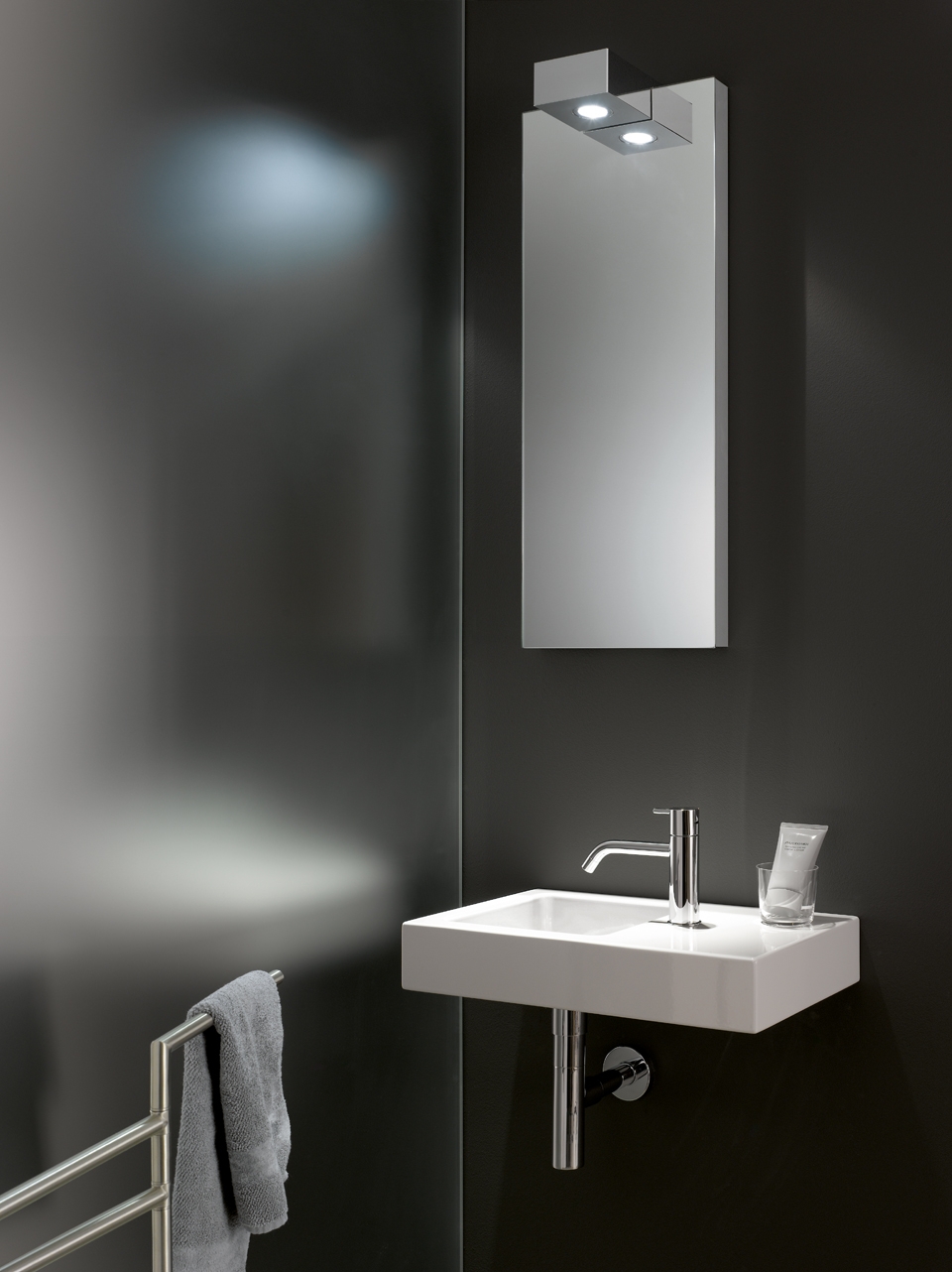 Wo der Grundriss nur wenig Platz lässt und kein Fenster vorhanden ist, hilft die Physik: Kleine Tricks mit Spiegel, Volt und Watt holen das Licht ins Bad und schaffen so optisch zusätzliche Quadratmeter. Die Möglichkeiten reichen von der indirekten Beleuchtung hinter dem Wandspiegel bis zum gezielten Lichtelement an Wand oder Decke. Geschickte Materialkombinationen können reizvolle Kontraste erzeugen.