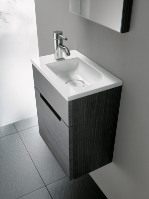 Die Optik leidet unter dem reduzierten Format keineswegs. Meist sind es puristische, klar geometrische Formen, die im kleinen Gäste-WC punkten. Sie verleihen dem Raum Struktur und bieten einen großen gestalterischen Spielraum. Ein Statement kann auch das Material sein: Die klassische Keramik ist ein bodenständiger Allrounder, während die filigranere Stahl-Emaille Designer-Feeling ins WC bringt und durch die Bildung eines Hohlraumes zugleich Stauraum bieten kann.