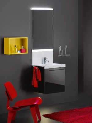 Aus einem Guss lautet der Grundgedanke bei der Neuvorstellung conceptwall von burgbad. Der Waschtisch geht direkt in die Wand über und macht zusätzliche Fliesen somit überflüssig. Direkt integriert ist auch der beleuchtete Spiegel. Ein weiteres Detail: Eine aufwendig ausgefräste Mulde ersetzt den Griff am Unterschrank. |